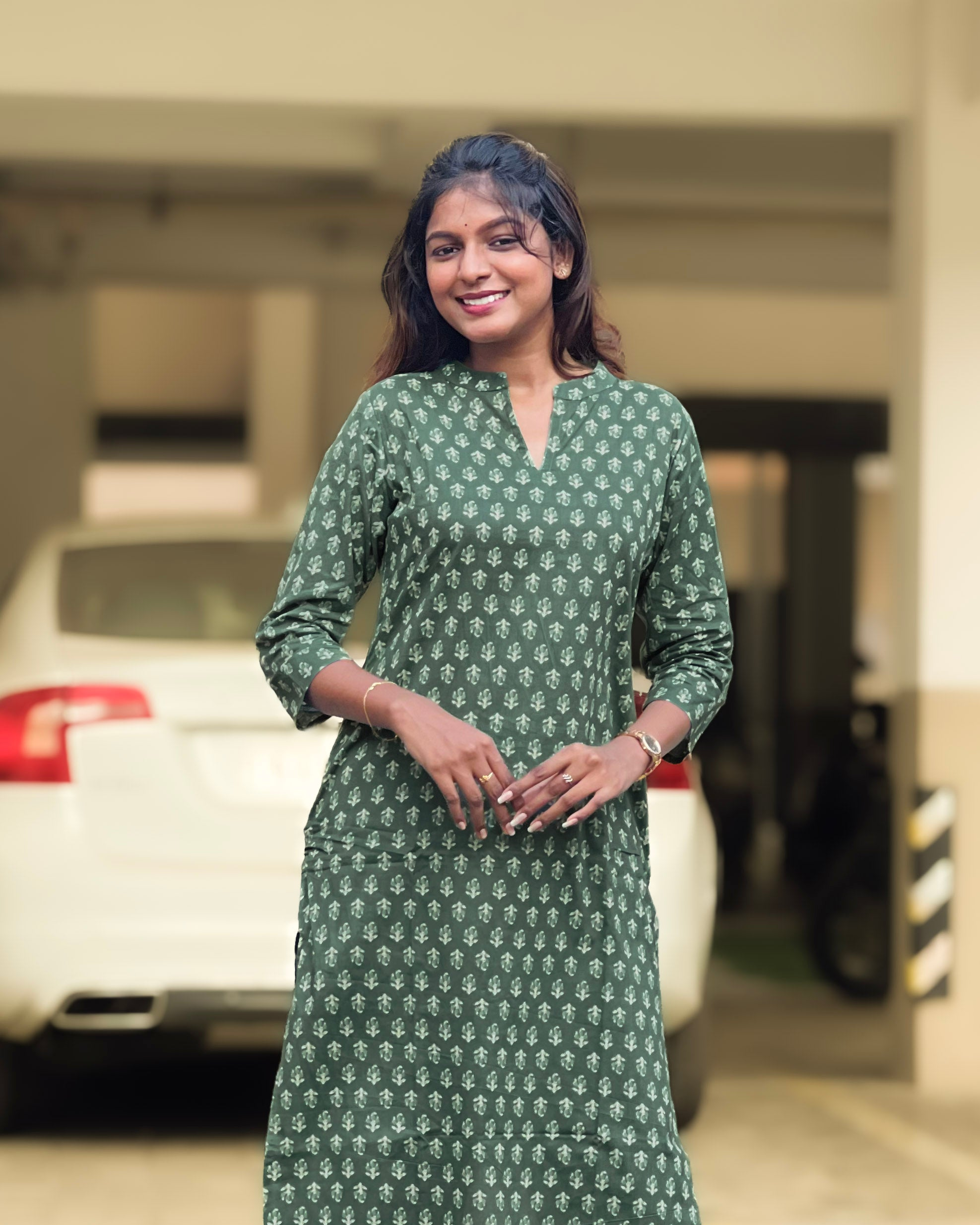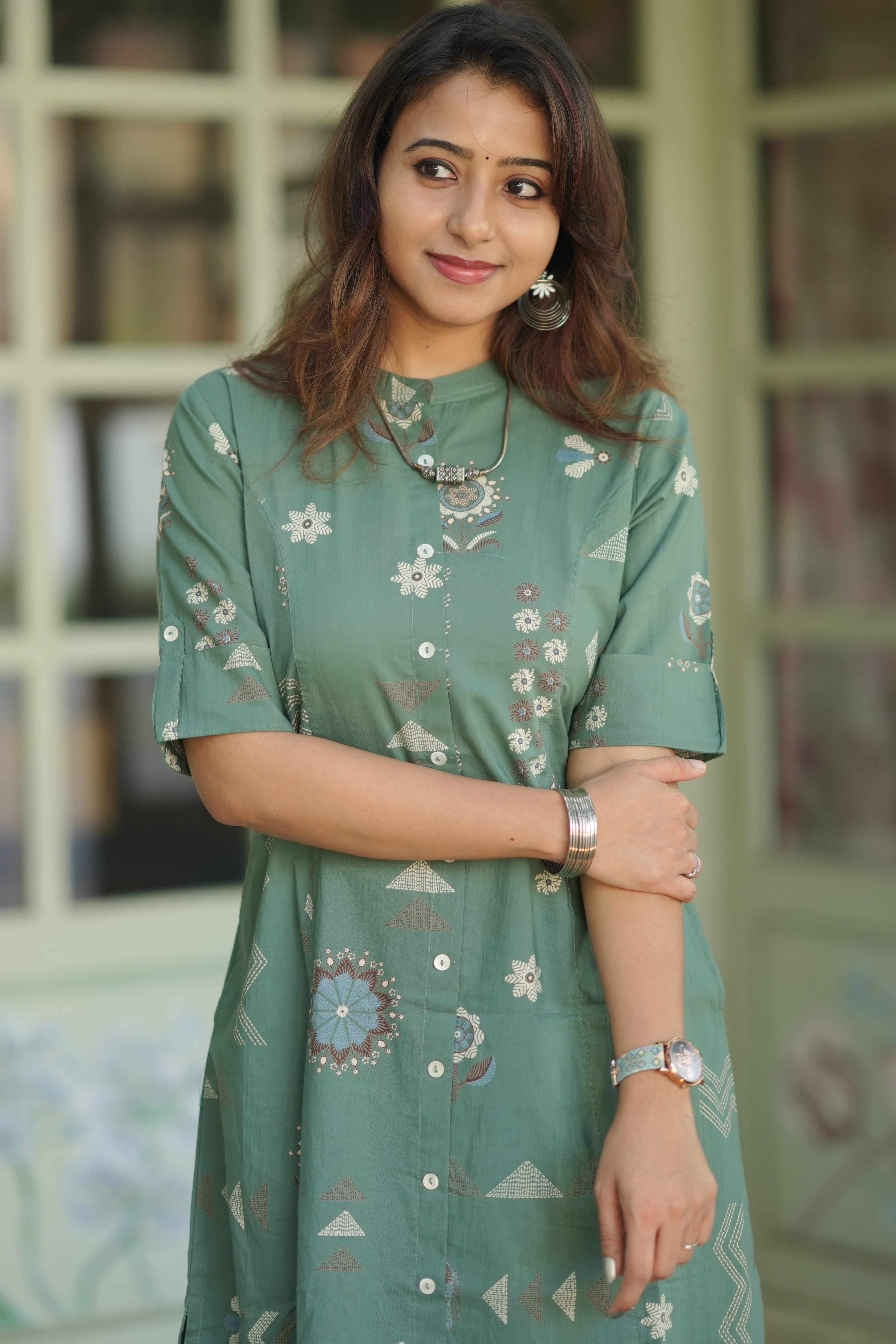 Graceful Green 3Pc Mul Cotton Kurta Set with Embroidery Details