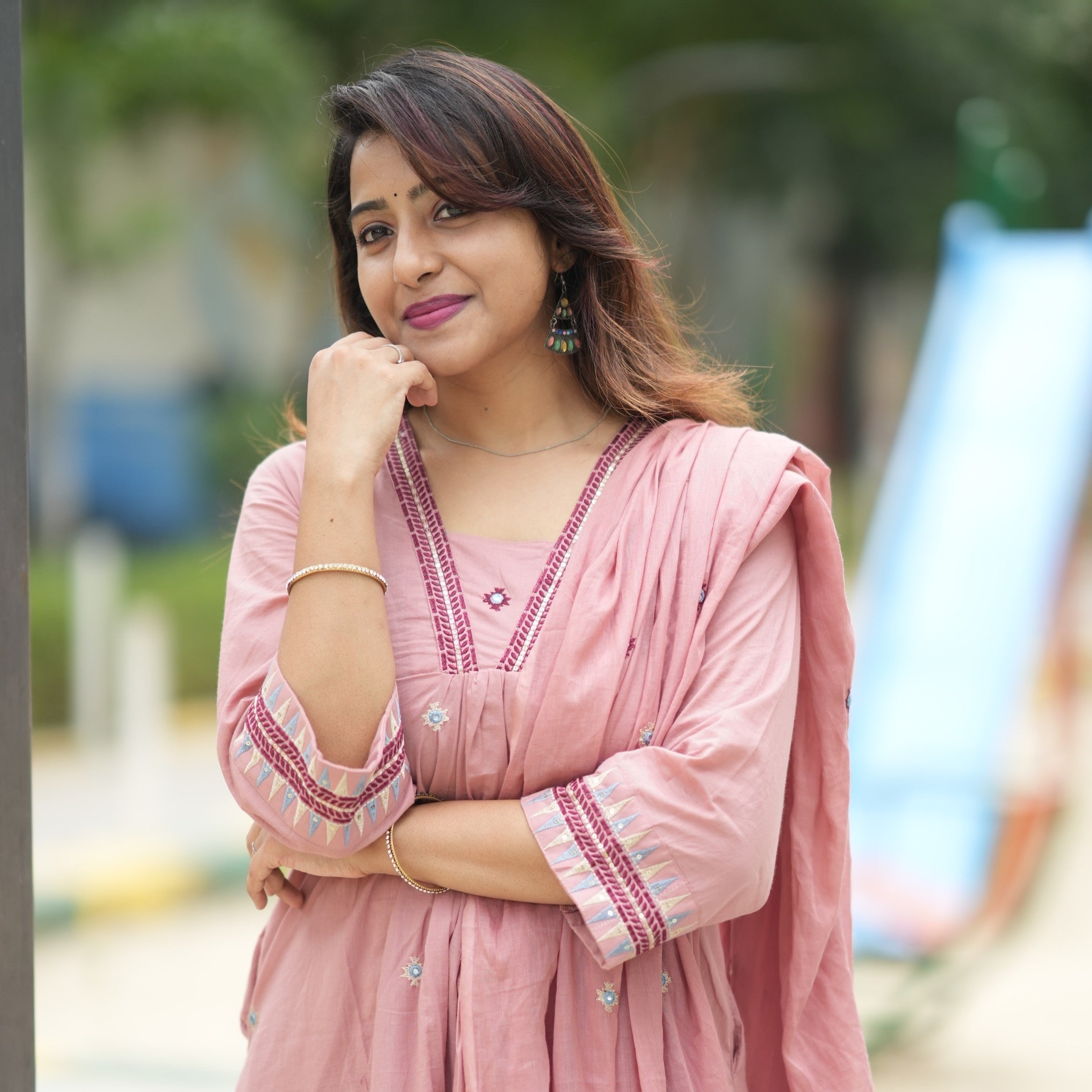 ₹400 off (-22%)Pink Embroidered 3Pc Kurta Set